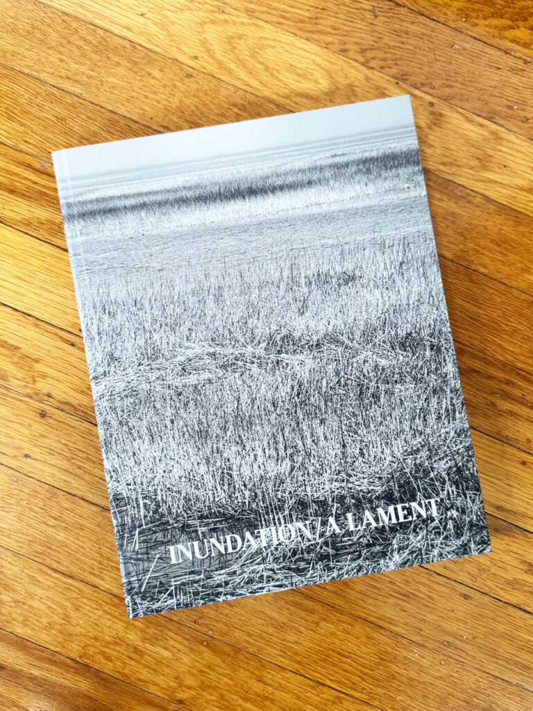 Inundation/A Lament The images included in this series were captured along California’s Humboldt County coast. This is not only one of the most active earthquake locations on Earth with colliding tectonic plates right off shore, but also where land and sea are often at the same level. Local tectonic movements cause the onshore land here to sink making it even more susceptible to the inevitable – climate change caused rising sea. Already tsunami warning signs are omnipresent as you drive north from farm land south of Eureka to Orick and beyond. The Arcata water storage tanks will have to be moved inland. The waste water ponds created to filter used water before it flows out to sea will be inundated. The already soggy grazing pastures will be overwhelmed with sea water. The fishing and logging industries which have long supported Humboldt County will be devastated. The Orick pasture in front of the old school house favored by herds of elk will be under water as will the extraordinarily beautiful Trinidad and Moonstone beaches. More often than not, I’m drawn to places that have an ecological story to tell – places where there’s a sense of urgency to not only address climate change, but for me, as a photographer, to capture the idiosyncratic character of the land before what once was is gone or horribly transformed. That is the case here. This series of images is my lament, my love song to this incredibly beautiful stretch of the Northern California coast. Limited edition of 100. All books signed and numbered. Hard covered, flush cut 12×9.25”. Lay flat binding so images that cross over center gutter read well. 49 of my photographs of Humboldt County coastal area which will be devastated by climate change caused sea rise. 88 pages. Poem by Jerry Martien. Book design by Bob Ciano.